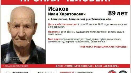 #Исаков Иван Харитонович1936 г.р. (89 лет) с. Армизонское, Армизонский р-н, Тюменская обл. Утром 23 апреля 2026 года вышел из дома и не вернулся. Приметы: рост 185 см, худощавого телосложения, …
