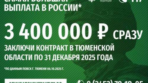 Граждане, которые вступят в ряды ВС РФ в военкоматах региона либо в пункте отбора на военную службу по контракту города Тюмени (ул. Республики, 2/1) до 31 декабря, получат самую большую выплату в …