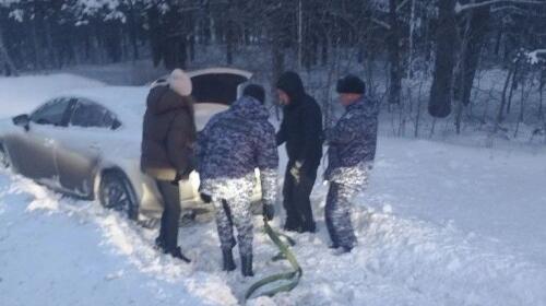 В вечернее время 1 января военнослужащие территориального управления Росгвардии оказали помощь женщине с ребенком, автомобиль которой улетел в заснеженный кювет на федеральной трассе.