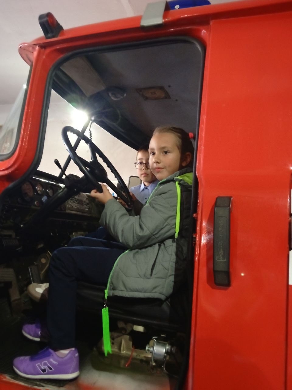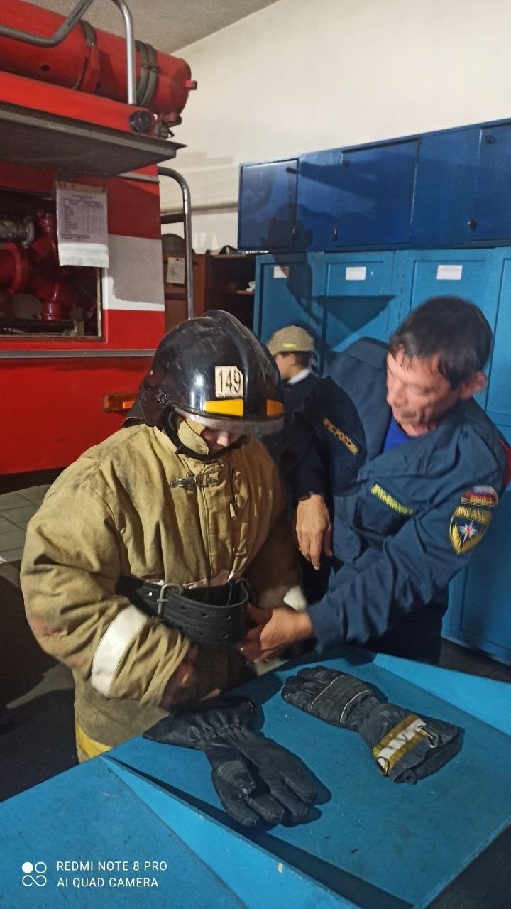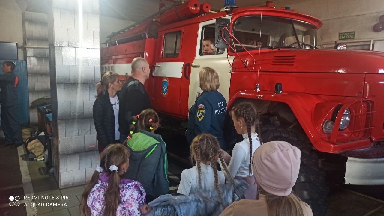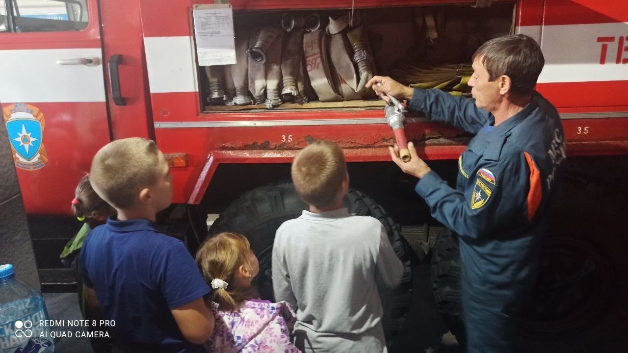 Работники пожарно-спасательной части радушно встретили ребят. Они показали, как выглядит пожарная машина изнутри, где находится бак, который заполняется водой, какими приспособлениями пользуются пожарные. А также продемонстрировали пожарные рукава и другие, столь нужные спасателям инструменты, необходимые при тушении возгораний.