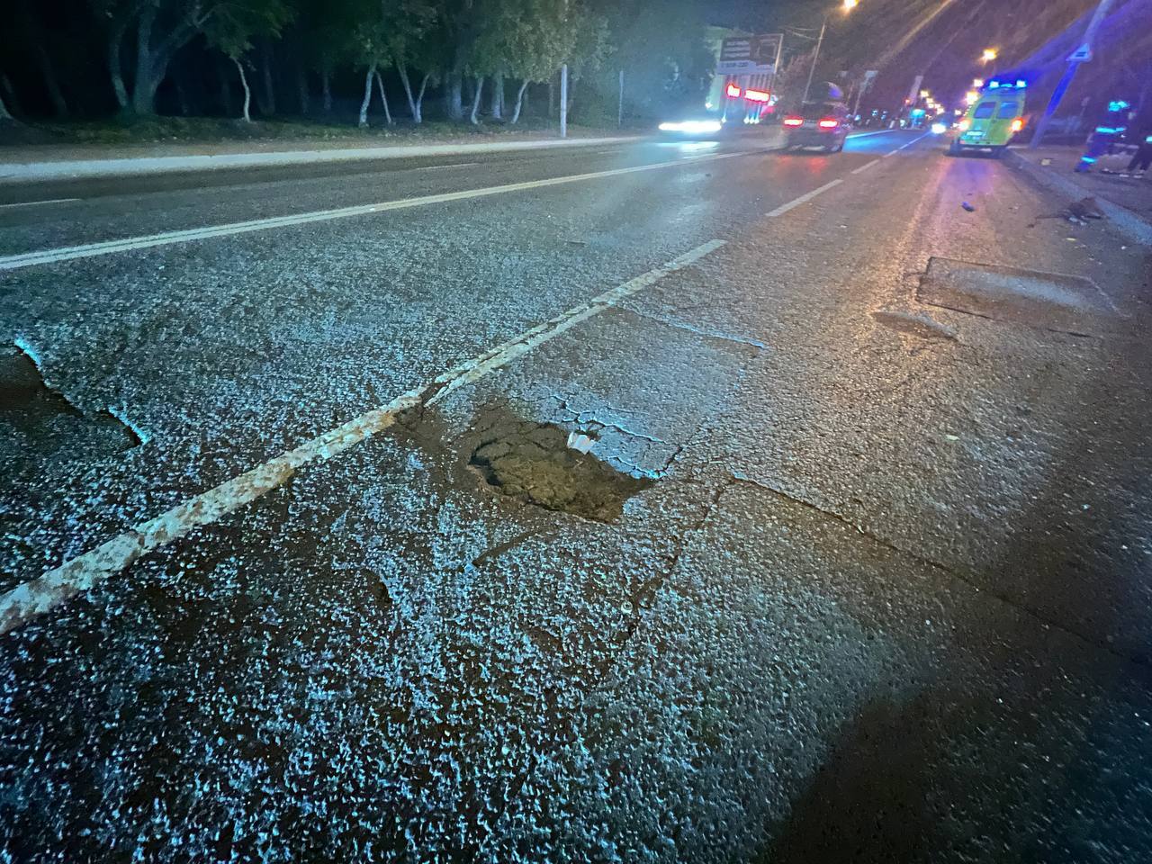 Около полуночи на ул.Республики,252 автомобиль ВАЗ211440 въехал в опору освещения. 19-летний водитель не справился с управлением автомобиля.