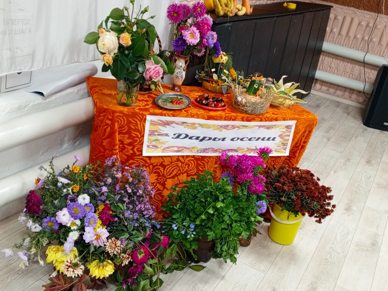 Также был объявлен конкурс поделок и букетов "Дары осени", где участники представили в творческой форме свои работы. Все они получили памятные подарки.
