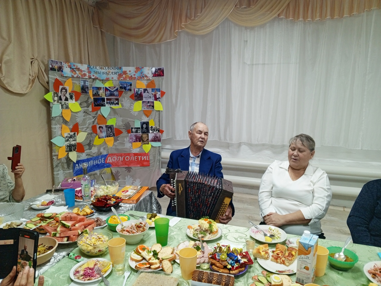 Продолжением праздника стало чаепитие, во время которого все смогли вспомнить молодые годы и спеть любимые песни под гармонь.