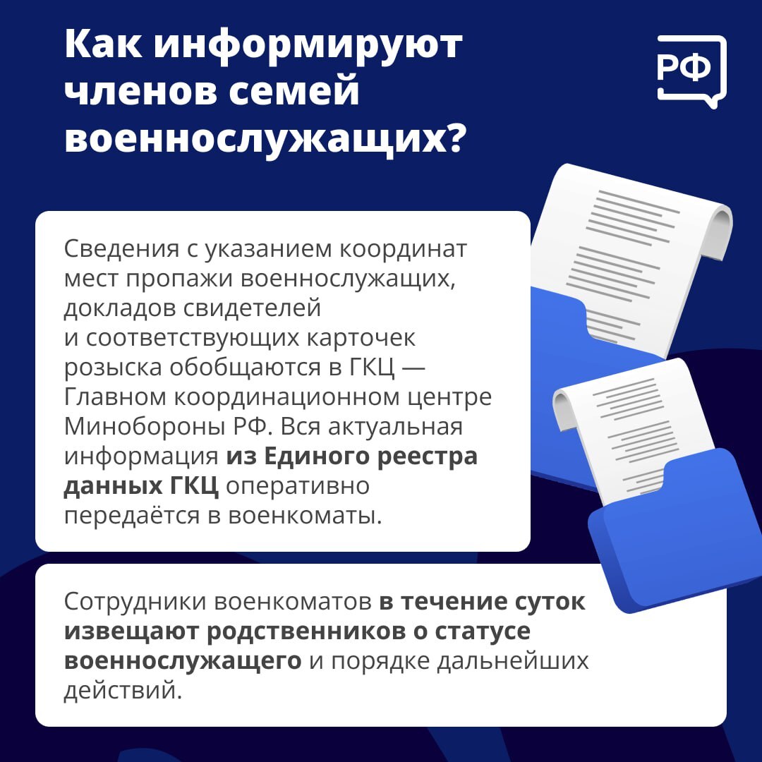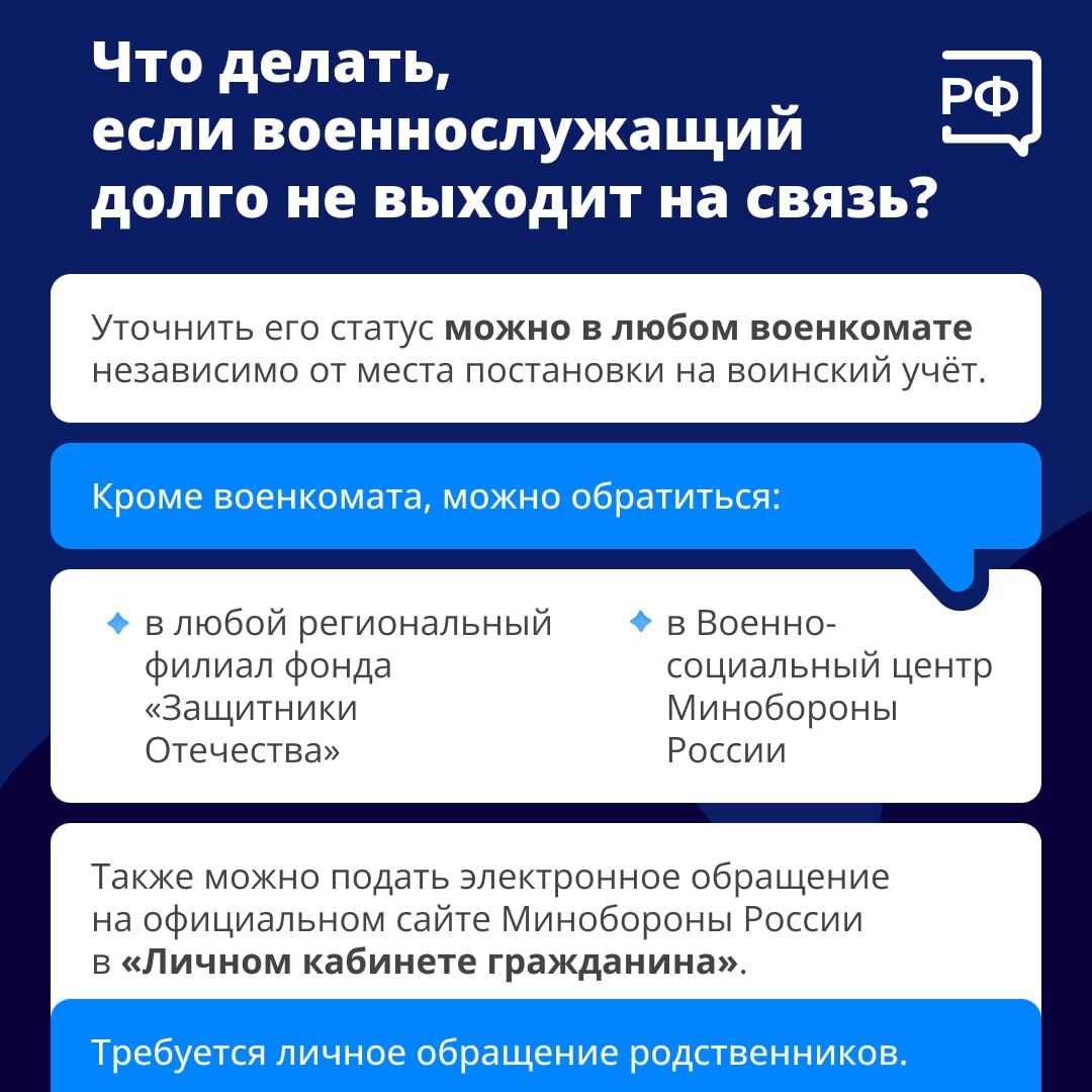 Куда можно обращаться родным военнослужащих, которые долго не выходят на связь, рассказываем в карточках.