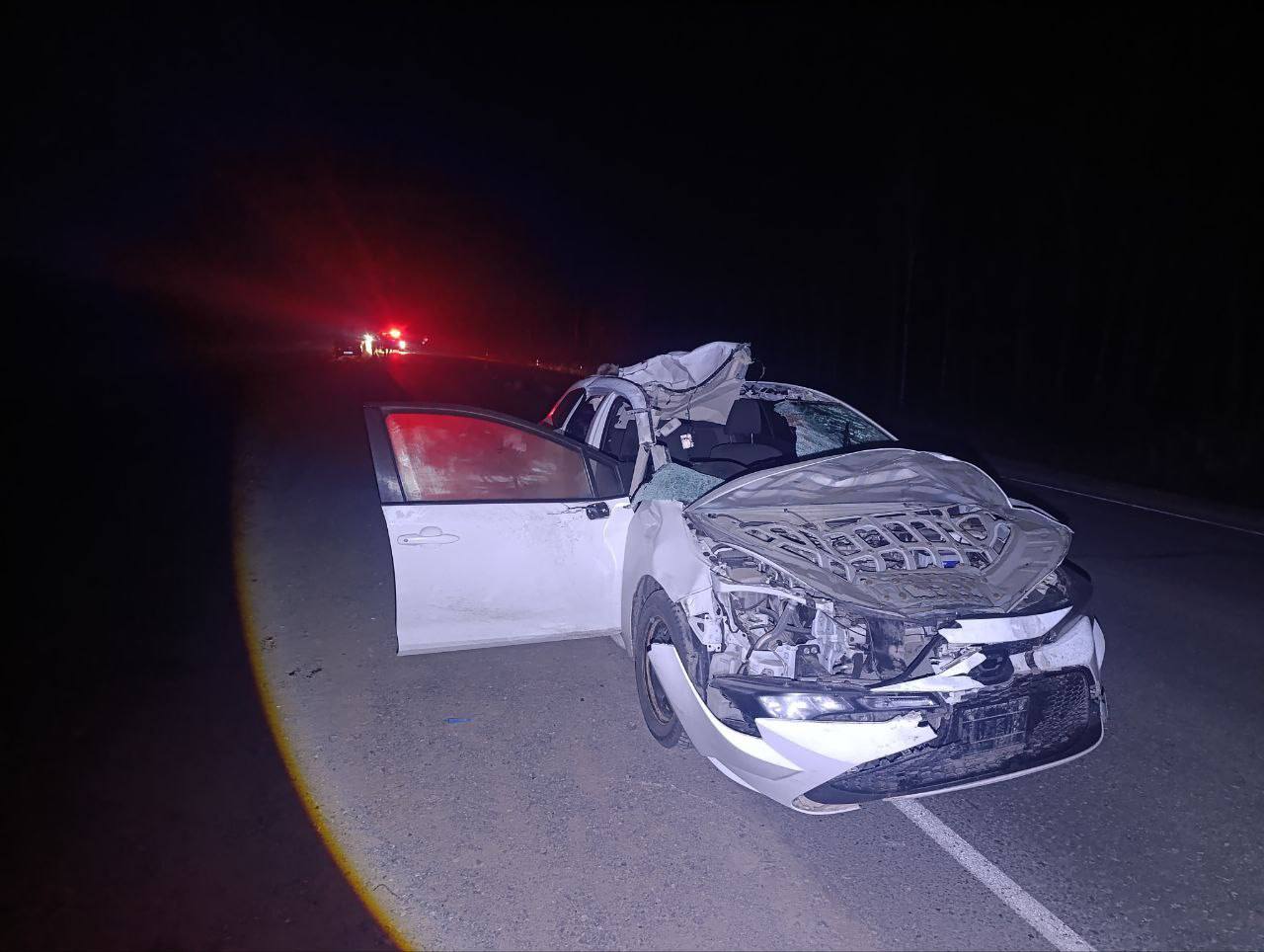 Лось сбит автомобилем "Тойота Королла" ночью на 150-м километре автодороги Курган-Тюмень в Исетском районе. ДТП произошло в зоне знака "Дикие животные".