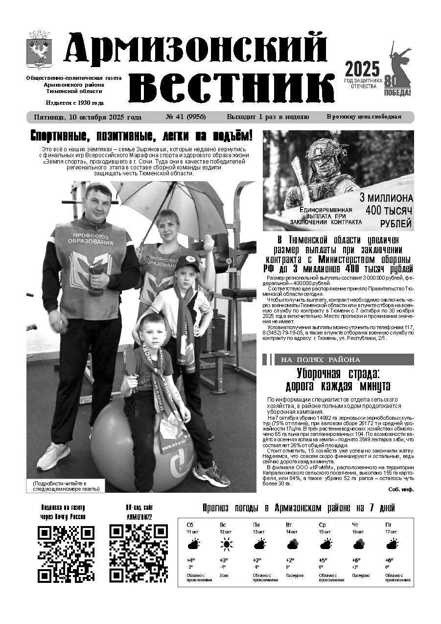 1. В Тюменской области увеличен размер выплаты при заключении контракта с Министерством обороны до 3 миллионов 400 тысяч рублей
