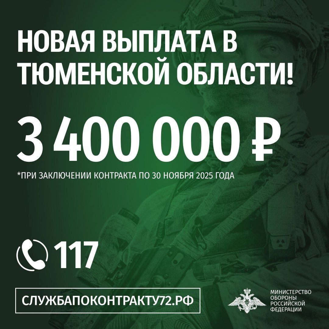 ✅ С 7 октября по 30 ноября 2025 года — 3 400 000 рублей каждому кандидату, который подписал контракт: