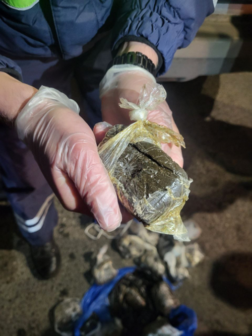 В присутствии понятых полицейские обнаружили в багажнике, и салоне автомобиля, прозрачные полиэтиленовые пакеты с предположительно наркотическим веществом, фольгу для фасовки товара, денежные средства в размере более 600 тысяч рублей, несколько ноутбуков. Проведенная экспертиза установила, что вещество является "гашиш" общей массой более 5 килограммов.