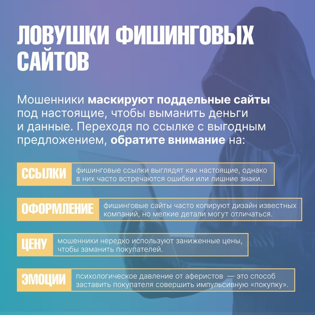 Фейковые сайты и поддельные предложения — главные инструменты злоумышленников. Объясняем в карточках, как совершать покупки в интернете без риска для ваших финансов.