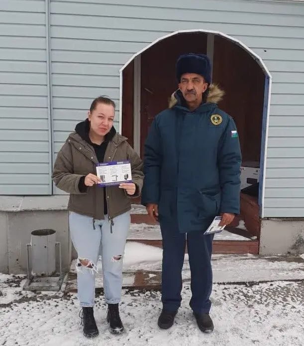 Работники противопожарной службы проводят беседы с жителями и раздают памятки с рекомендациями по пожарной безопасности.