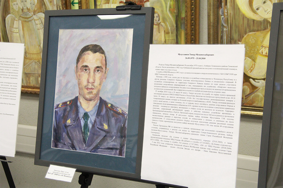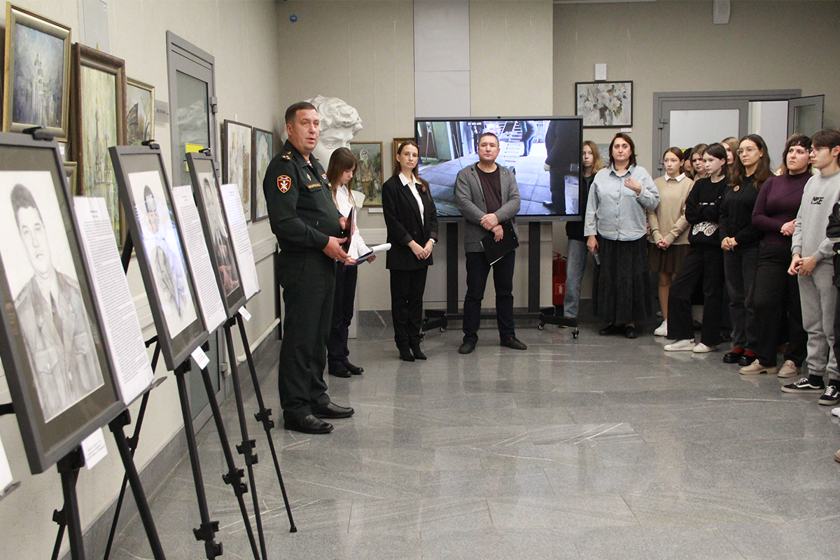 В учреждении состоялся урок мужества с участием руководства территориального управления Росгвардии, инициаторов проекта, авторов работ, родных героев, запечатлённых на холсте. Учащиеся школы представили 7 портретов с изображением сотрудников СОБР Героя России майора милиции Тимура Мухутдинова и капитана полиции Виктора Тимофеева, сотрудников ОМОН подполковника милиции Юрия Фирсова, сержанта милиции Евгения Степанчука и старшего сержанта милиции Серика Садубова, а также участников специальной военной операции Артура Епифанцева и Дениса Яремчука.