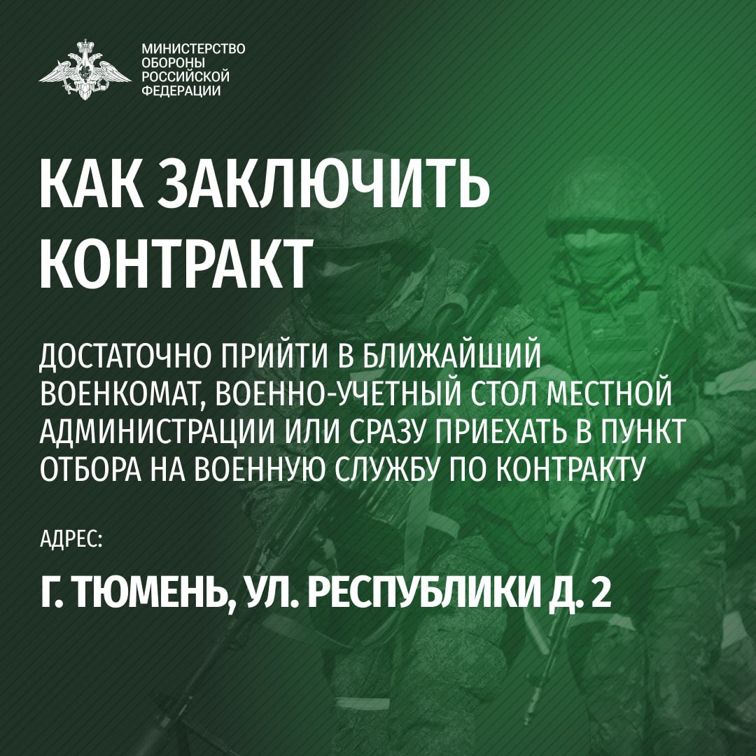 ✅ в пункте отбора на военную службу по адресу: г. Тюмень, ул. Республики, 2/1;