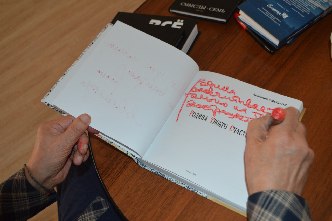 Творческая встреча с ним состоялась 24 ноября в районном Доме культуры, в ходе которой автор книг о Сибири, Тюмени и тюменском Севере презентовал свои последние печатные творения и отвечал на вопросы зрителей. Он подарил районной библиотеке новые книги – "Родина твоего счастья", "Всё. Это. Есть. Всегда", сборник стихов "Смыслы-семь".