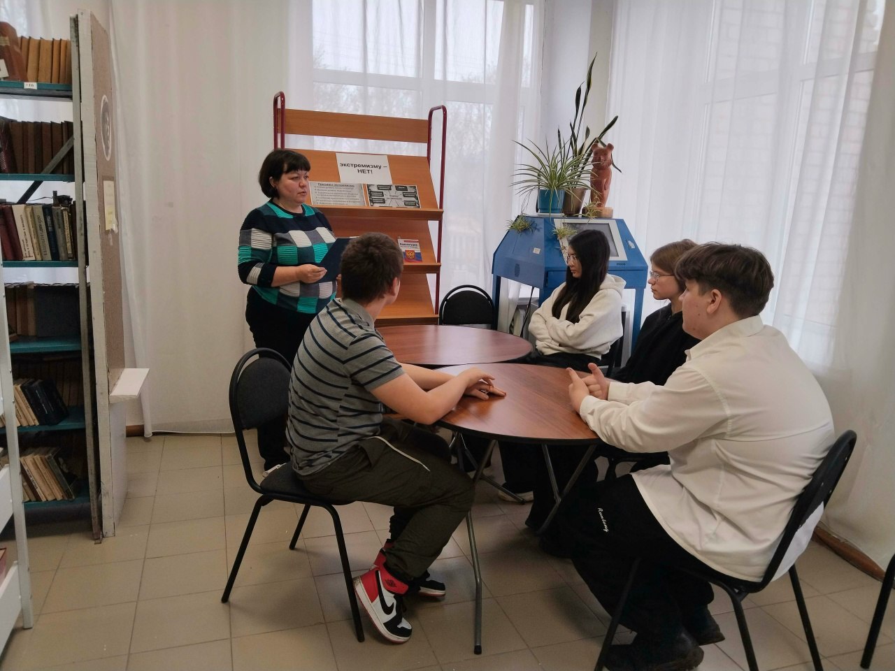 В воскресенье, 23 ноября, в Калмакской библиотеке-филиале в рамках профилактики экстремизма среди несовершеннолетних состоялся информационный урок-беседа "Экстремизм и патриотизм. Понятие и ответственность".