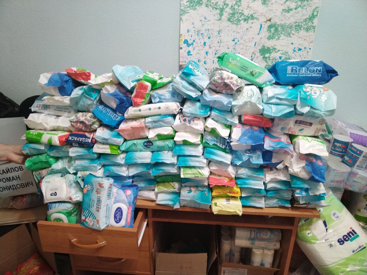 Подростки с энтузиазмом взялись за дело и быстро перенесли все на импровизированный "склад" в администрации района – спасибо родителям за их достойное воспитание!