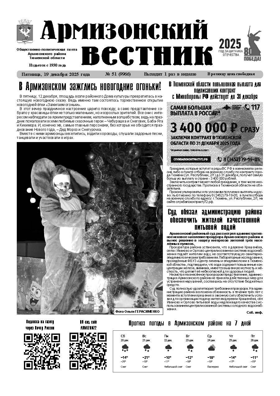 Читайте в свежем номере газеты "Армизонский вестник" от 19 декабря: