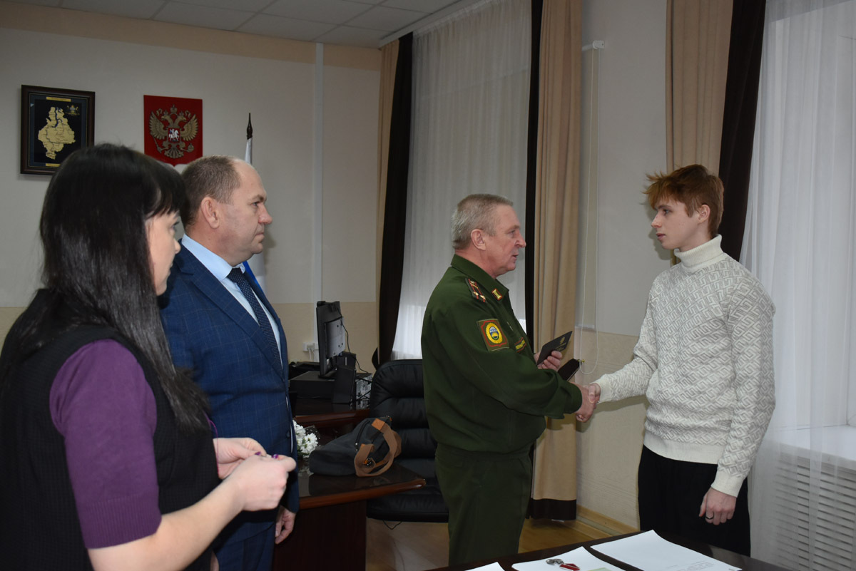 Также удостоверение ветерана боевых действий вручили Станиславу Сараеву, который был призван в ряды Вооруженных сил в 2024 году на срочную службу и выполнял боевые задачи по отражению вооруженного вторжения на территорию Российской Федерации. Он участвовал в противостоянии военной провокации войск ВСУ на государственной границе в Курской области и прилегающих районов проведения СВО. Также Станислав был награжден нагрудным знаком "Ветеран Боевых действий на Украине СВО".