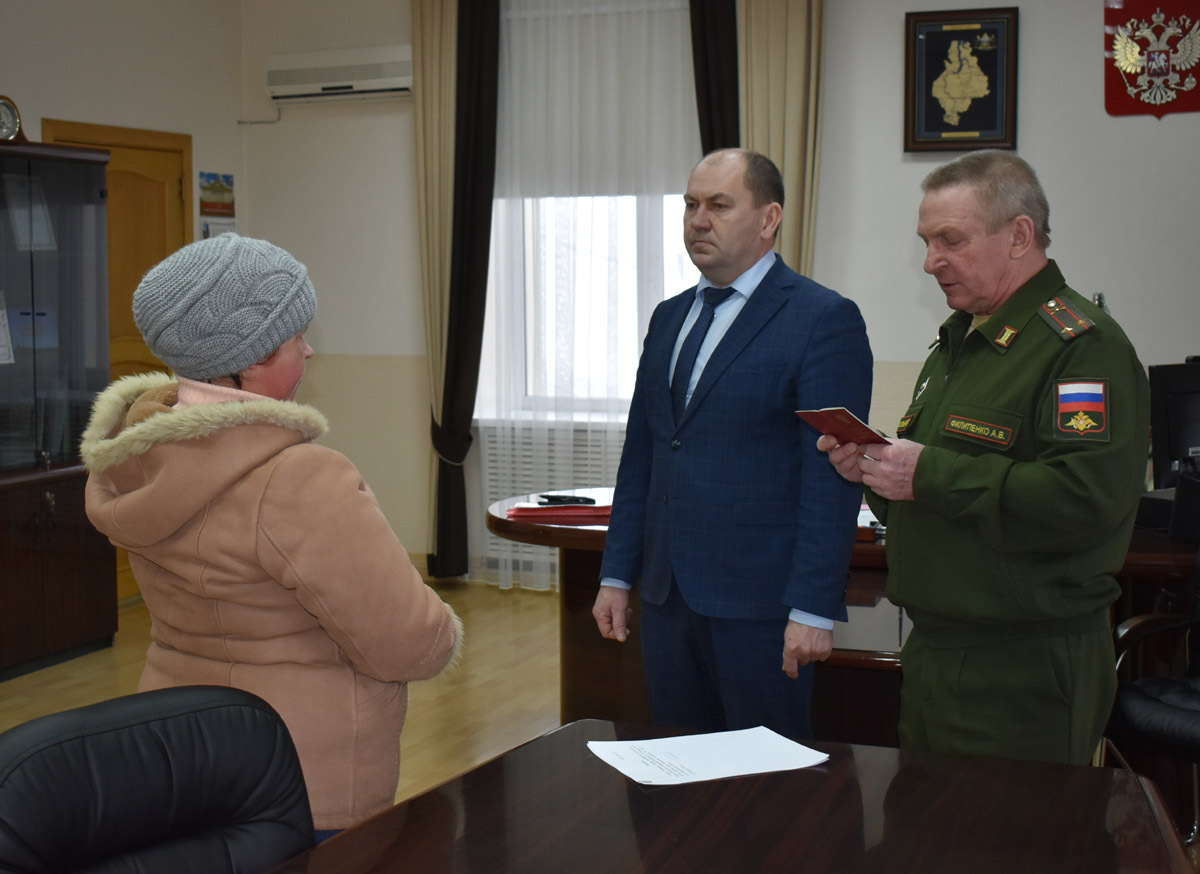 Военный комиссар передал удостоверение ветерана боевых действий и нагрудный знак "Ветеран боевых действий на Украине СВО" еще одному армизонцу – Владимиру Сироткину, который во время прохождения срочной службы участвовал в контртеррористической операции по отражению вооруженного вторжения войск ВСУ на территорию Курской области.