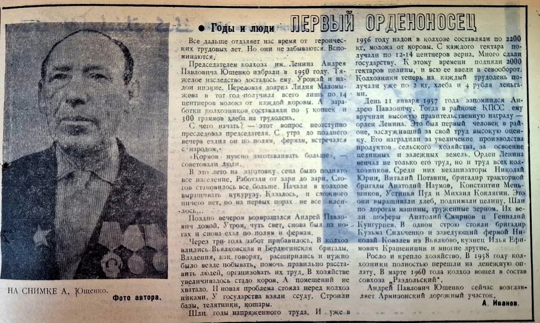 Благодаря сотрудничеству с сектором по архивным делам администрации Армизонского муниципального района, мы продолжаем публикации в новой рубрике, где будет размещаться информация о жизни нашего края и его людях, опубликованная в разные годы в районной газете.