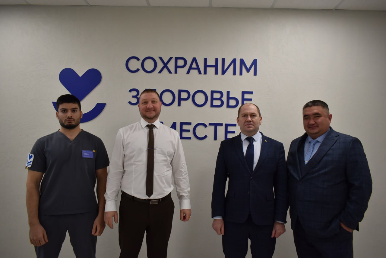 Затем он вместе с заведующим поликлиникой Нурланом Жакеновым и Дмитрием Ульяновым разрезали красную ленту и пригласили желающих пройти внутрь, на экскурсию, которую провела старшая медсестра Ксения Баёва.