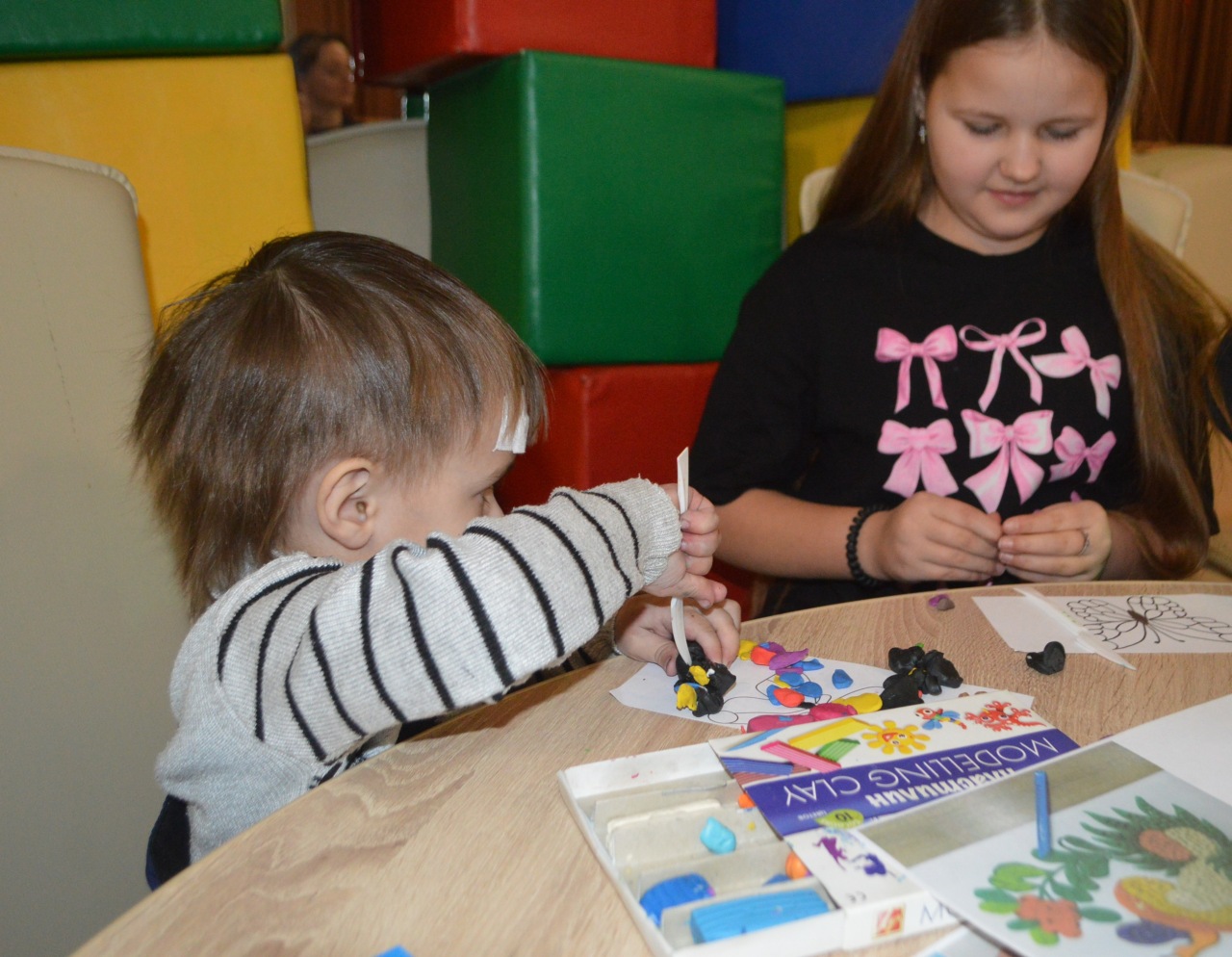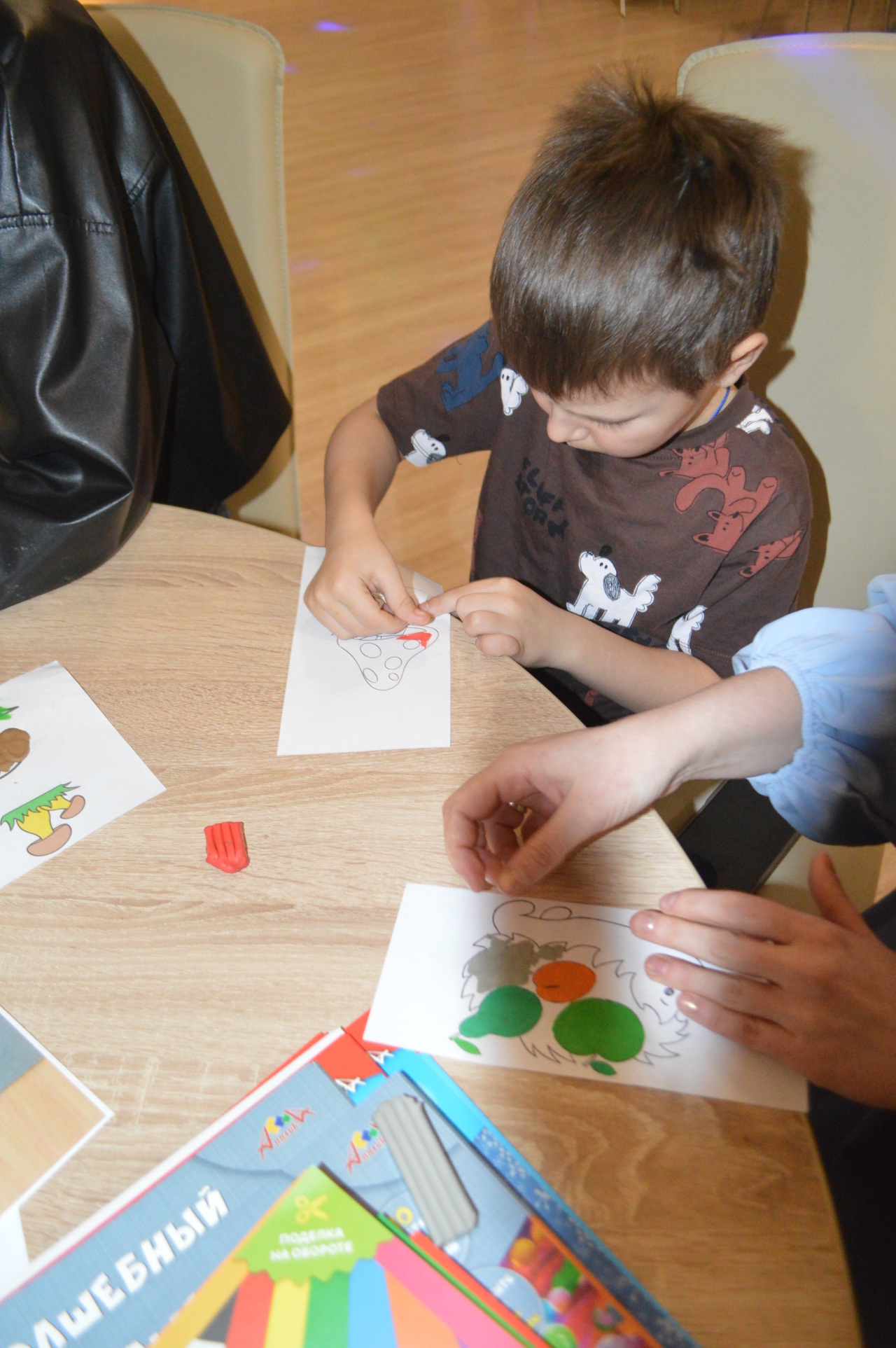 Оказалось, что вы можете стать автором удивительной картины, даже если совсем не умеете рисовать. Для этого нужно выбрать лист с заранее распечатанным контуром будущего "шедевра", открыть коробку с разноцветной пластической массой и можно начинать работу.