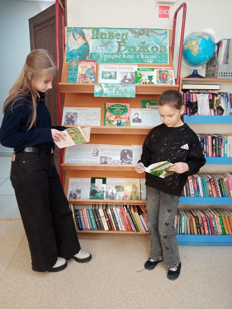 Со вторника по пятницу здесь работала книжная выставка его знаменитых сказов, сопровождаемая познавательными беседами с детьми о творческом пути писателя. Библиотекарь рассказывала о его непростой судьбе, любви к родному Уралу и народу, о том, как он собирал и переработал фольклорные предания, превращая их в увлекательные литературные произведения.