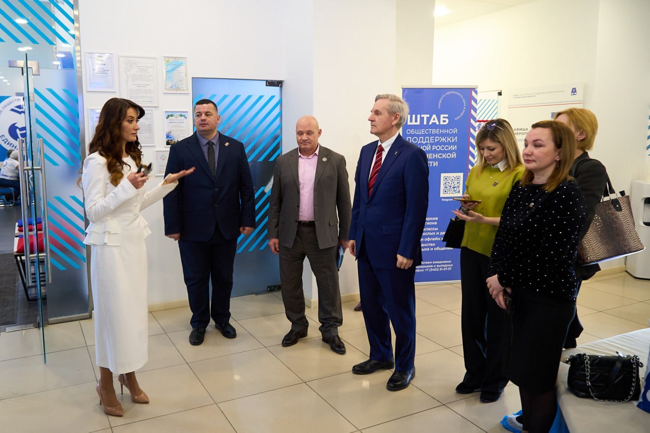 Экскурсию по Штабу провела председатель комитета по социальной политике Тюменской областной думы, руководитель регионального исполкома "Единой России" Ольга Швецова.