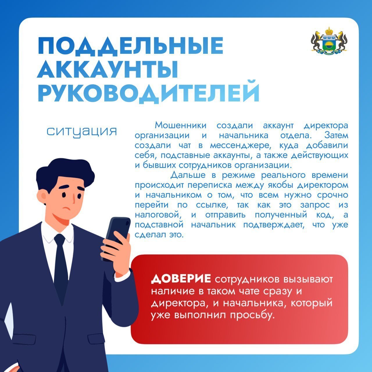 Злоумышленники всё чаще используют схему с поддельными аккаунтами директоров и начальников, чтобы войти в доверие сотрудников. Создаются фейковые профили, рабочие чаты и правдоподобная переписка, но цель одна — обман и получение данных или денег.
