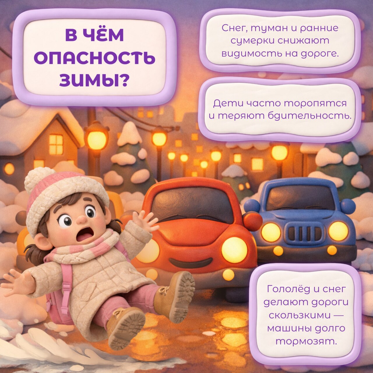 Зимой на улицах темнеет рано, а скользкие дороги и сугробы создают дополнительные риски. Чтобы уберечь детей, важно напоминать им правила поведения на улице.