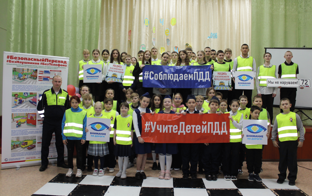 Автоинспекторы рассказали школьникам о важности соблюдения ПДД, особенно при переходе проезжей части, а также призвали ребят полностью сосредоточиться на дорожной обстановке, убрать телефон и наушники, чтобы вовремя среагировать на опасность и быть видимыми для водителей.