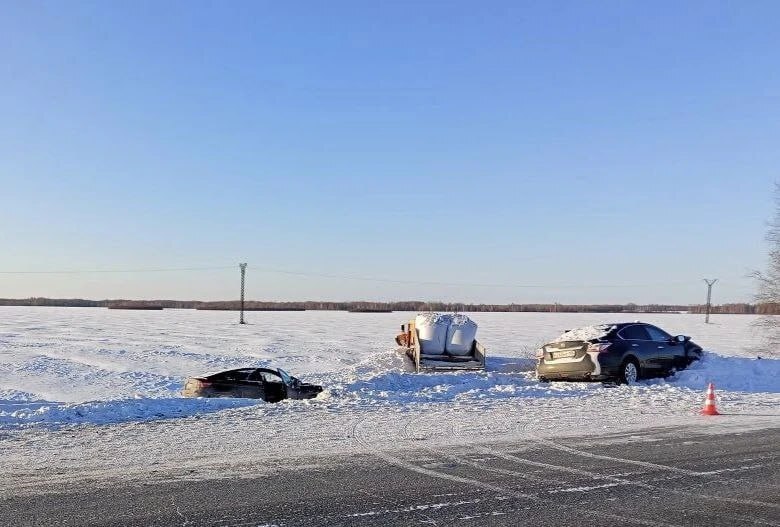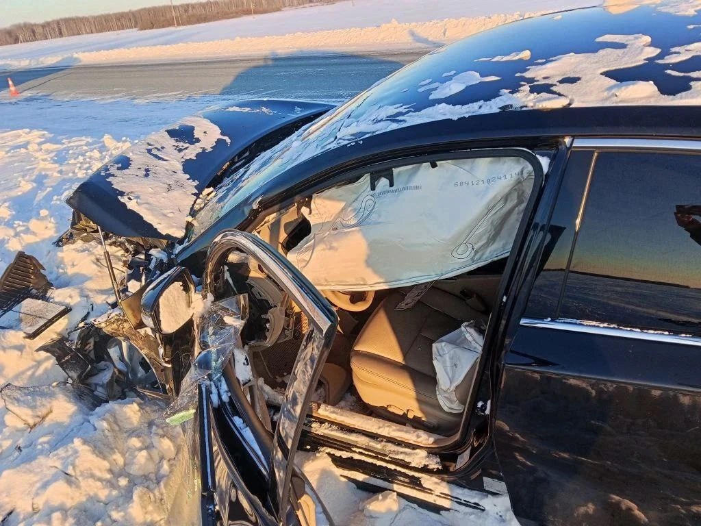 На 37-м километре автодороги Тюмень-Нижняя Тавда в Нижнетавдинском округе столкнулись "БМВ" и "КамАЗ". От удара грузовик отбросило на "Ниссан", ехавший во встречном направлении. Автомобили раскидало по кюветам.
