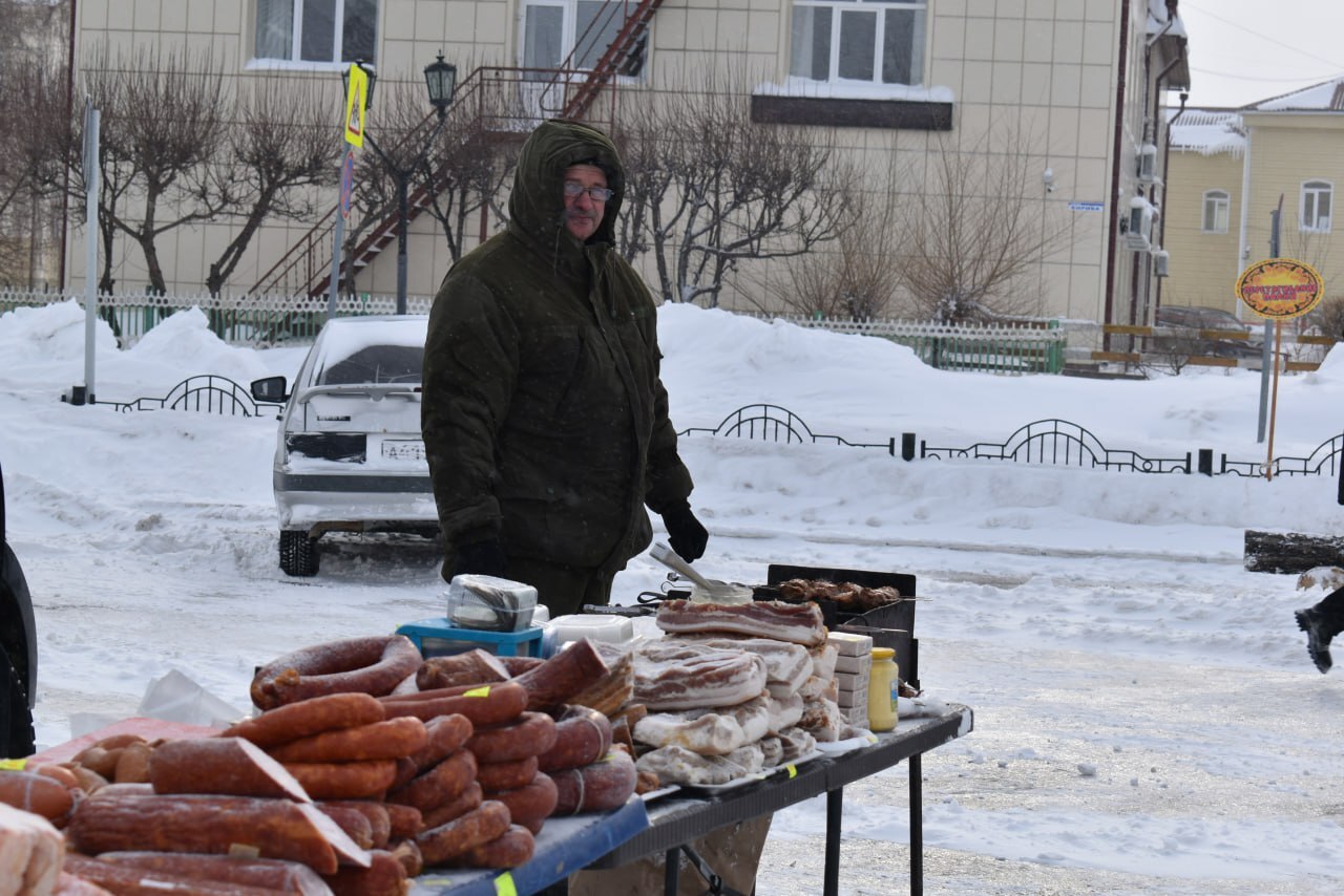 Чтобы гости не замерзли и оставались полны сил, желающих ждало "Блинное подворье", где они могли попить горячий чай с румяными блинами, а также приобрести ароматный шашлык или мясные деликатесы.