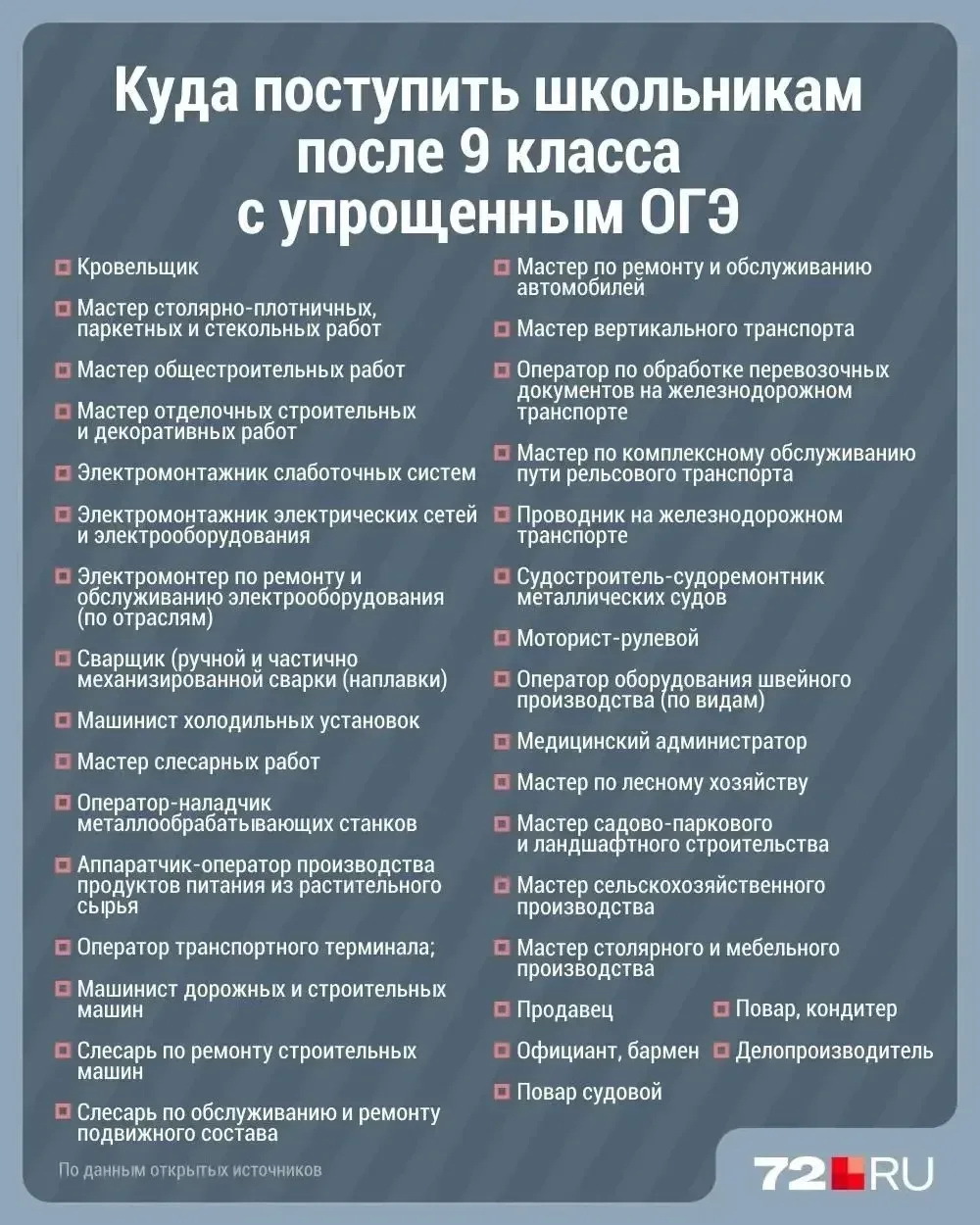 ⬆️ Власти обещают, что с упрощенным ОГЭ девятиклассников в Тюмени возьмут на любую из профессий, которые мы перечислили на карточке.
