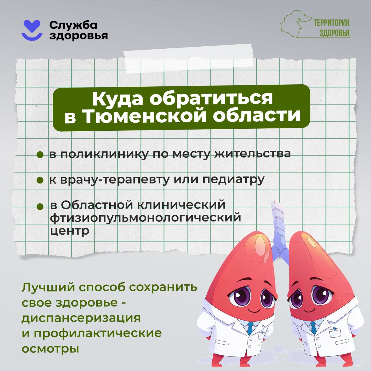 ✅ Ежегодная диспансеризация и флюорография.