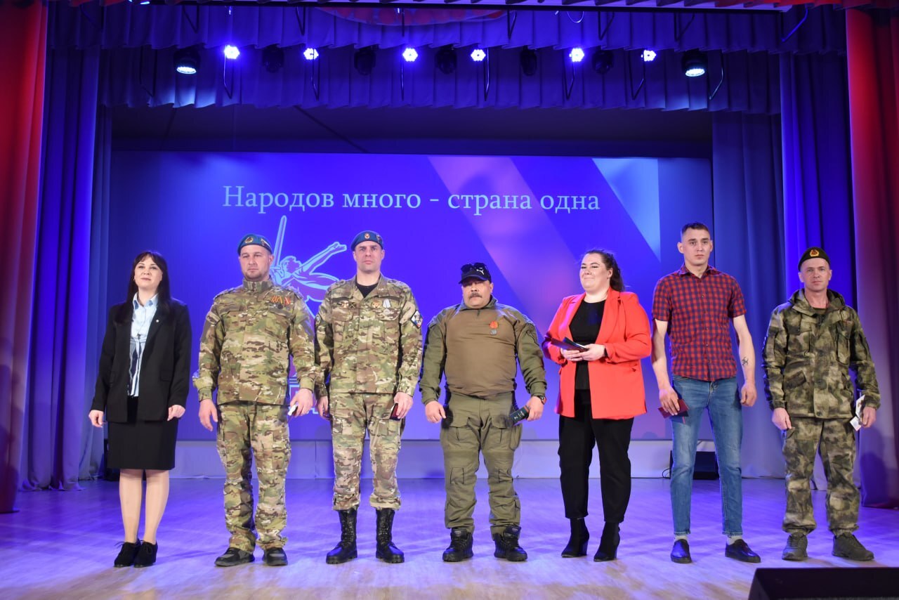 Во время концерта ветеранам спецоперации вручили заслуженные награды. Удостоверения общественной организации "Держава" и нагрудные знаки "Ветеран боевых действий на Украине" получили Роман Коркин, Денис Гузеев, Лариса Седова, Виктор Шматок, Алексей Байгачев, Виктор Фролов и Евгений Клочко, который еще награжден медалью "Доброволец специальной военной операции". А Ирина Биль отмечена Благодарностью Всероссийского общественного движения "Отцы России" за воспитание героических детей – сына и дочери, ставших участниками спецоперации.
