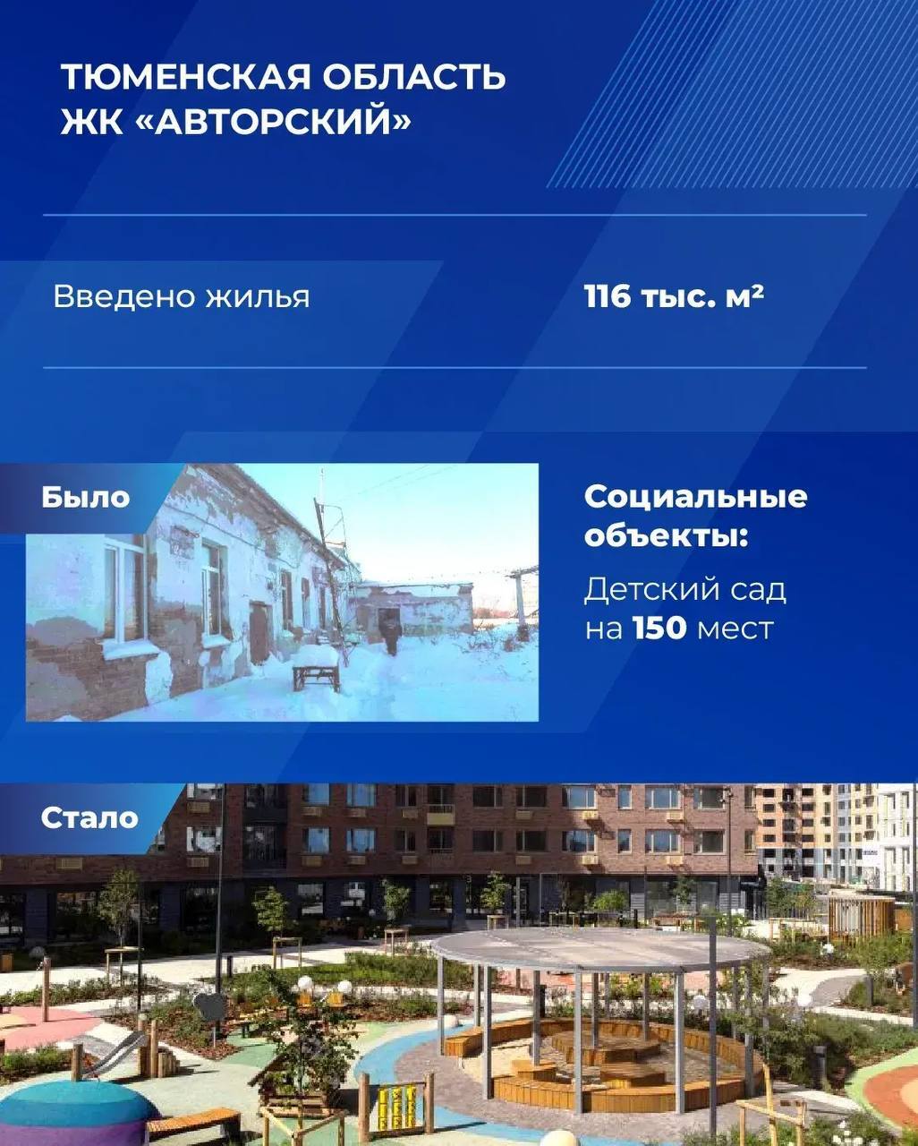 С 2021 года в Тюменской области успешно реализуются договоры комплексного развития территорий. Сегодня под КРТ в регионе определены 43 территории общей площадью около 800 гектаров, их градостроительный потенциал — свыше 6,5 млн кв. м. На них, в том числе, построят объекты образования, здравоохранения, культуры и спорта.