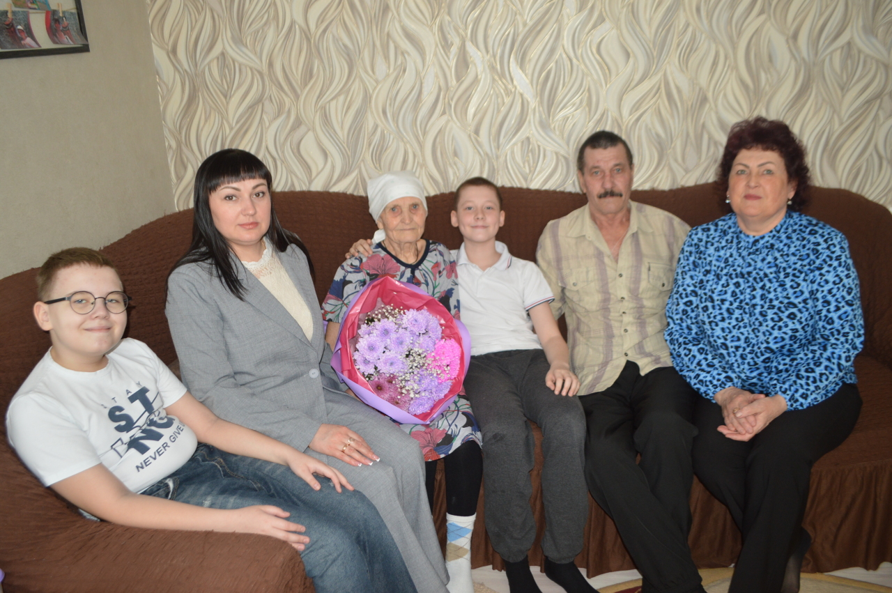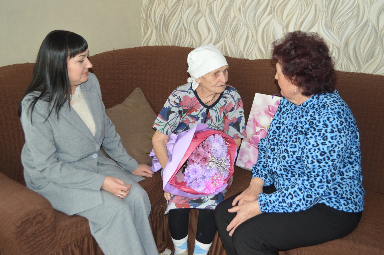 Поздравить именинницу с таким знаменательным днём приехали начальник отдела социальной защиты населения Алла Курочкина и заместитель главы округа по социальным вопросам Юлия Костюнина, которые вручили ей подарки и цветы, пожелав крепкого здоровья, семейного уюта и долгих лет жизни. Мария Агафоновна, в свою очередь, поблагодарила гостей за внимание, поздравления и тёплые слова в её адрес и поделилась воспоминаниями о нелёгком жизненном пути, пройти который, думаю, не каждый бы смог…