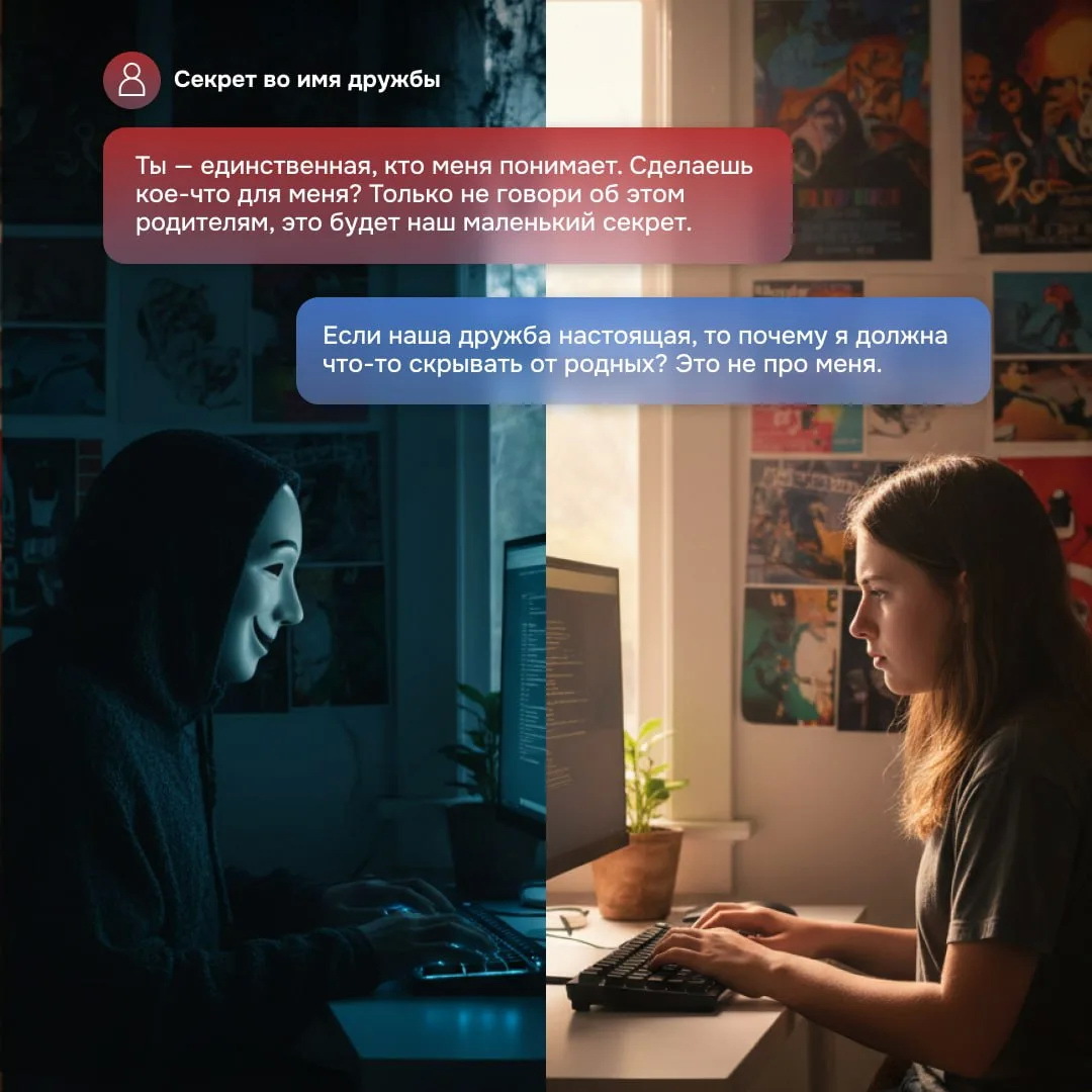 Мошенники или вербовщики выходят на ребенка следующим образом: