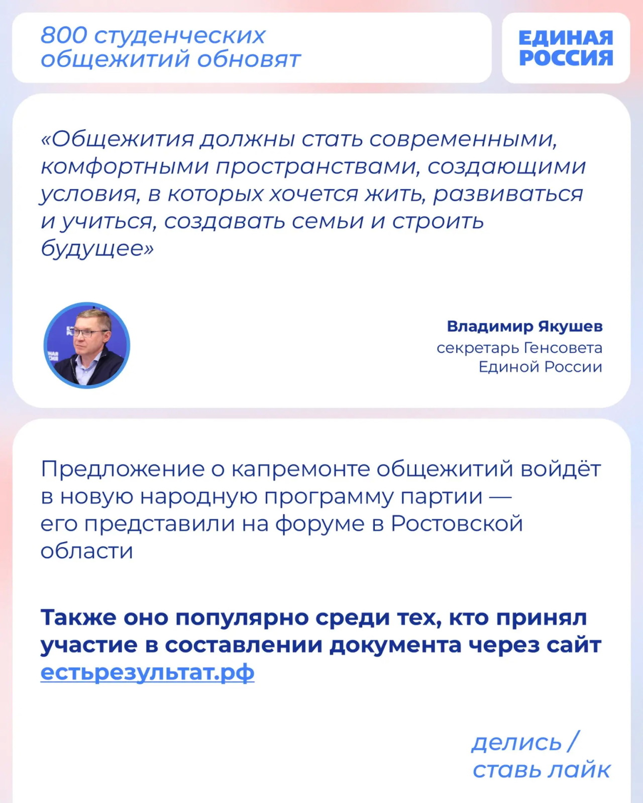 📚 Условия, в которых хочется жить, учиться и создавать семьи — именно такой ориентир задала Единая Россия в вопросе ремонта общежитий.