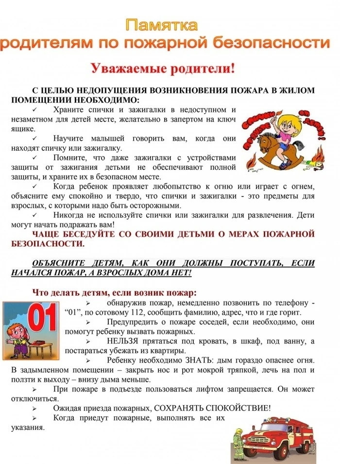 Памятка родителям по пожарной безопасности