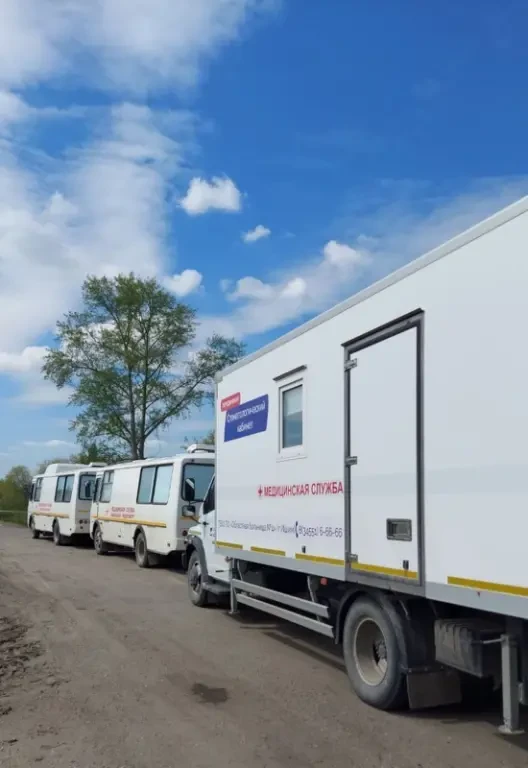 В состав автопоезда входят: передвижной флюрограф, кабинет раннего выявления заболеваний и стоматологический кабинет.