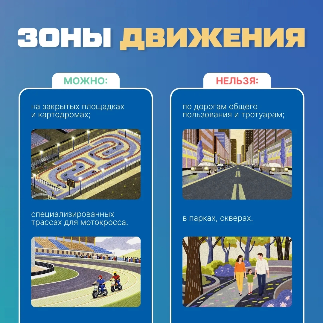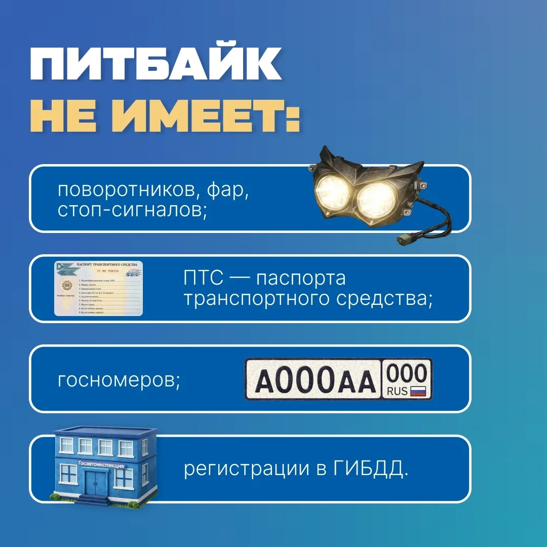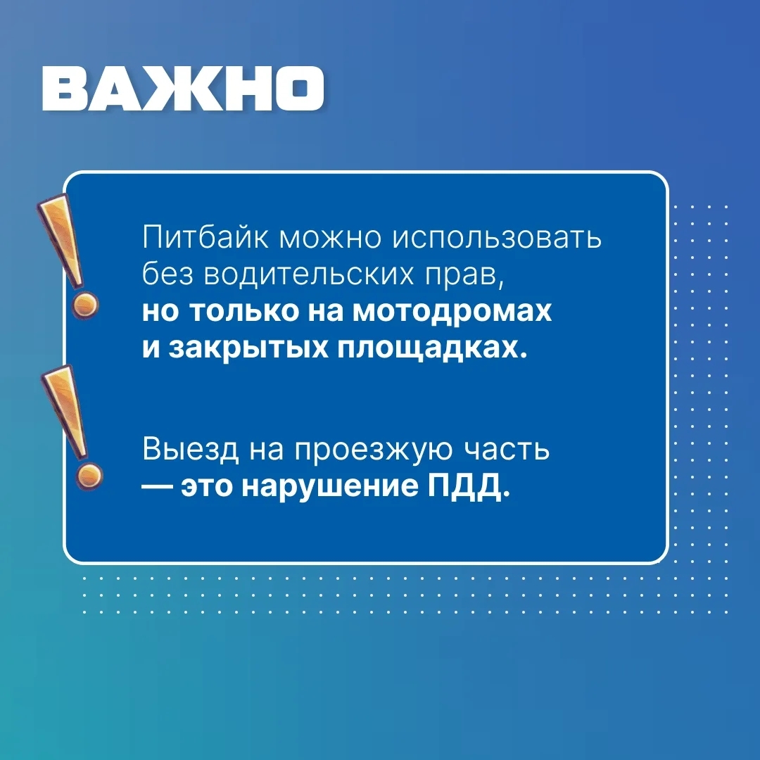 Эксплуатация мини-мотоцикла разрешена исключительно на специализированных треках и закрытых площадках. До трассы питбайк можно довозить только на прицепах.