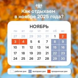 ДалееРаботаем с 27 октября по 1 ноября. В субботу рабочий день будет сокращен на час. Зато потом будет три дня выходных на День народного единства - с 2 по 4 …
