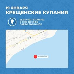 ДалееПо информации зав. сектором по делам ГО и ЧС администрации Армизонского округа Романа Шатропова, Крещенская купель из на озере Звериное около улицы Новая с. Армизонское будет сооружена.