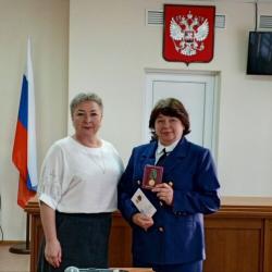 Сегодня, 5 ноября, в Армизонском районном суде, в тёплой и дружеской атмосфере состоялось торжественное награждение секретаря суда Ольги Зарубиной юбилейной медалью «100 лет Верховному суду».